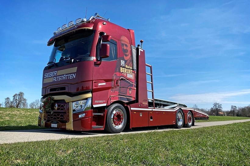 Die Autohilfe Sieber GmbH macht keinen Hehl aus ihrer Vorliebe für Lastwagen von Renault Trucks. Neuerdings mit einem T520 6x2 TAG, Sonderedition Berliet.
