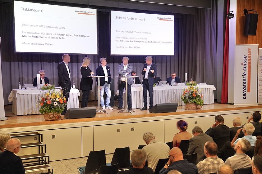 An das Podiumsgespräch knüpfte die Abstimmung zu Themen finanzieller Natur wie die Jahresrechnung 2022 oder auch das Budget des Verbandes für das laufende Jahr, gefolgt von der Wiederwahl der Geschäftsleitung von carrosserie suisse. Dieser sprachen die anwesenden Delegierten erneut ihr Vertrauen aus. Bei Traktandum 9 ergriff Daniel Röschli, Direktor des Branchenverbandes, das Wort und informierte die Versammelten über die Situation mit der aktuell autonom agierenden Region Genf. Der definitive Entscheid über einen Beitritt der Region steht noch aus, wird aber an der nächsten Versammlung noch im Juni gefällt. Ebenfalls erfuhren die Delegierten den Stand bei der Umsetzung der Verbandsstrategie 2025.