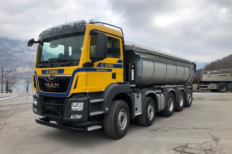 Küng Georg Transporte GmbH aus Mühlehorn ist ein Familienunternehmen das seit über 50 Jahren ein zuverlässiger Partner ist, wenn es um Aushub, Kiestransport, Kipper- und Kranarbeiten geht. Der neuste Zugang ist das Kraftpaket MAN TGS 44.500 10×4-6 BLL.