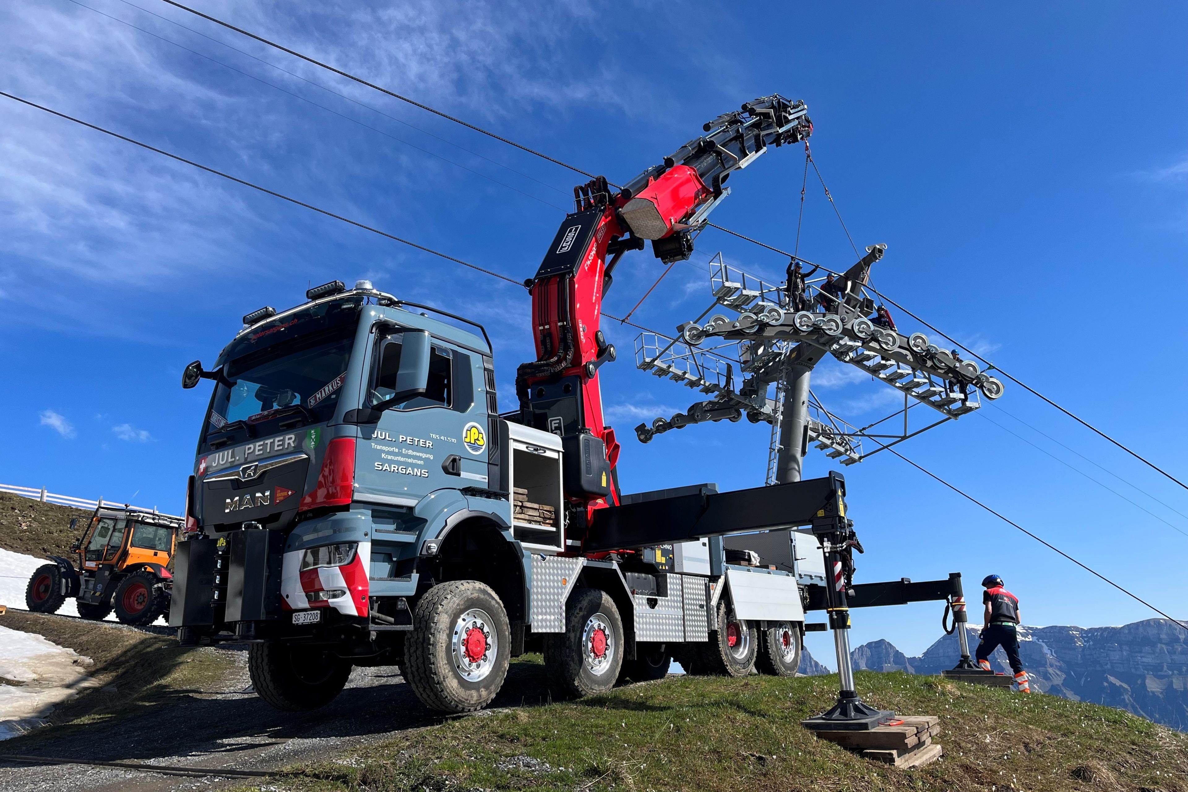 Seit kurzem ist nun der weltweit einzigartige Kranlastwagen MAN TGS 41.510 8x6-6 bei den Sargansern im Kranbetrieb im Einsatz.