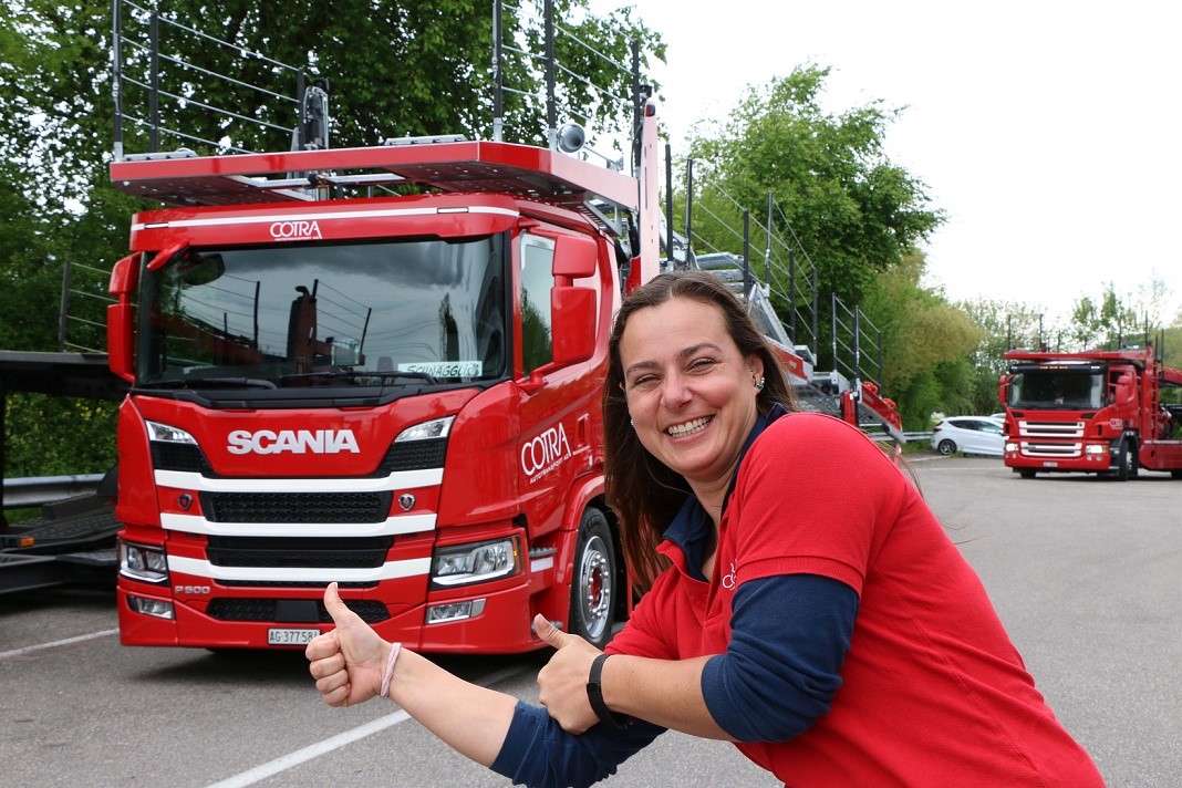 Im Frühsommer 2021 durfte Michèle Mathys, seit über zehn Jahren Berufsfahrerin bei der Cotra Autotransport AG in Lupfig, ihren neuen Scania P500 B 6x2/2 LB Autotransporter übernehmen und freut sich noch heute jeden Tag auf die nächste Liefertour.