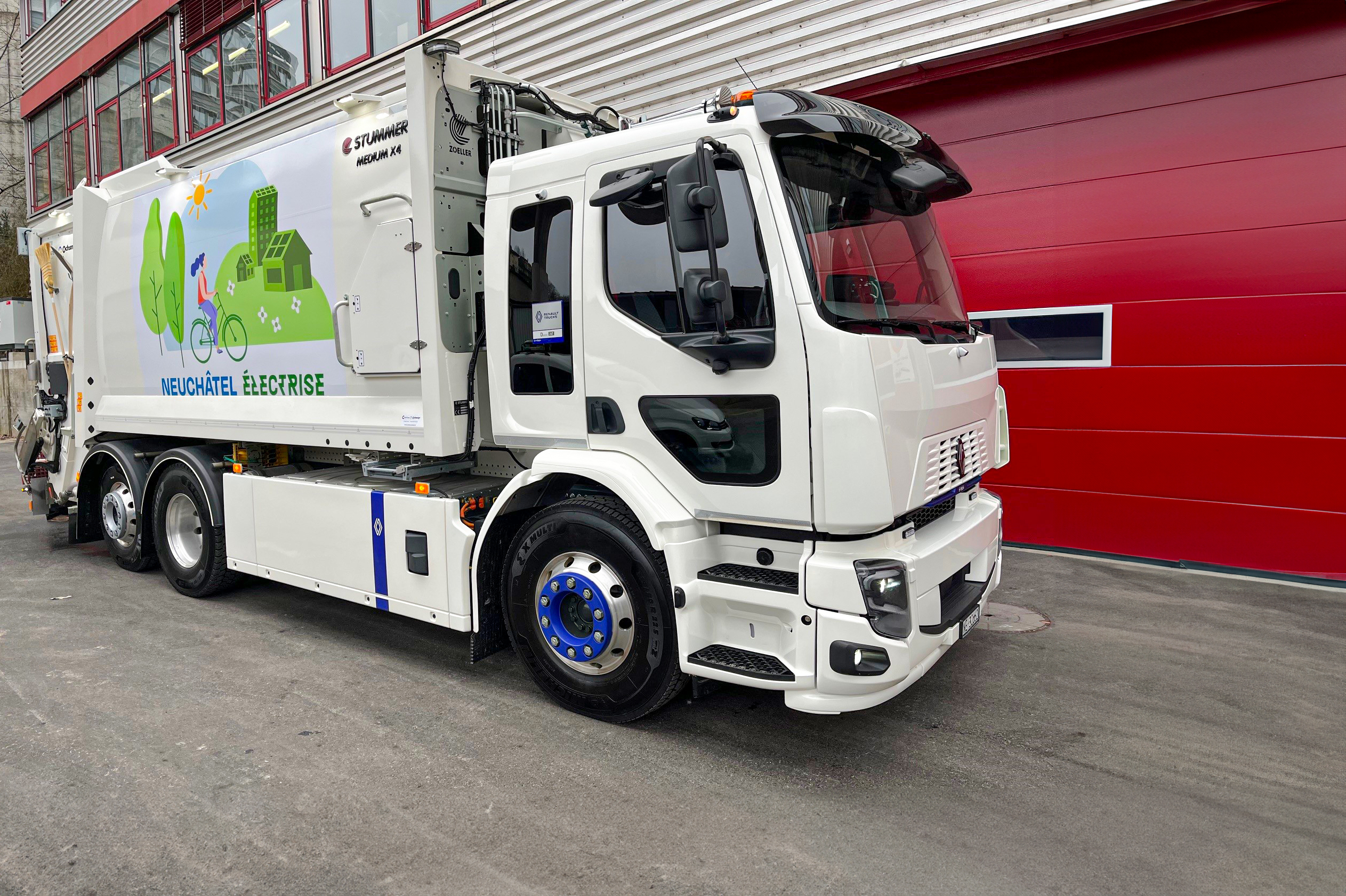 Die Stadt Neuenburg konnte während der Weihnachtstage 2024 ihren dritten vollelektrischen Kehrrichtwagen in ihre Flotte aufnehmen. Es handelt sich dabei um einen Renault Trucks E-Tech D-Wide mit einem Aufbau von Stummer.