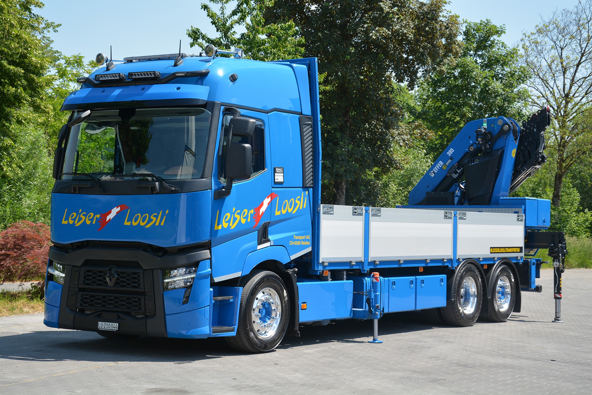 Neuer Renault Truck T520 P6×2 mit Effer-Kran für Leiser & Loosli Transport AG