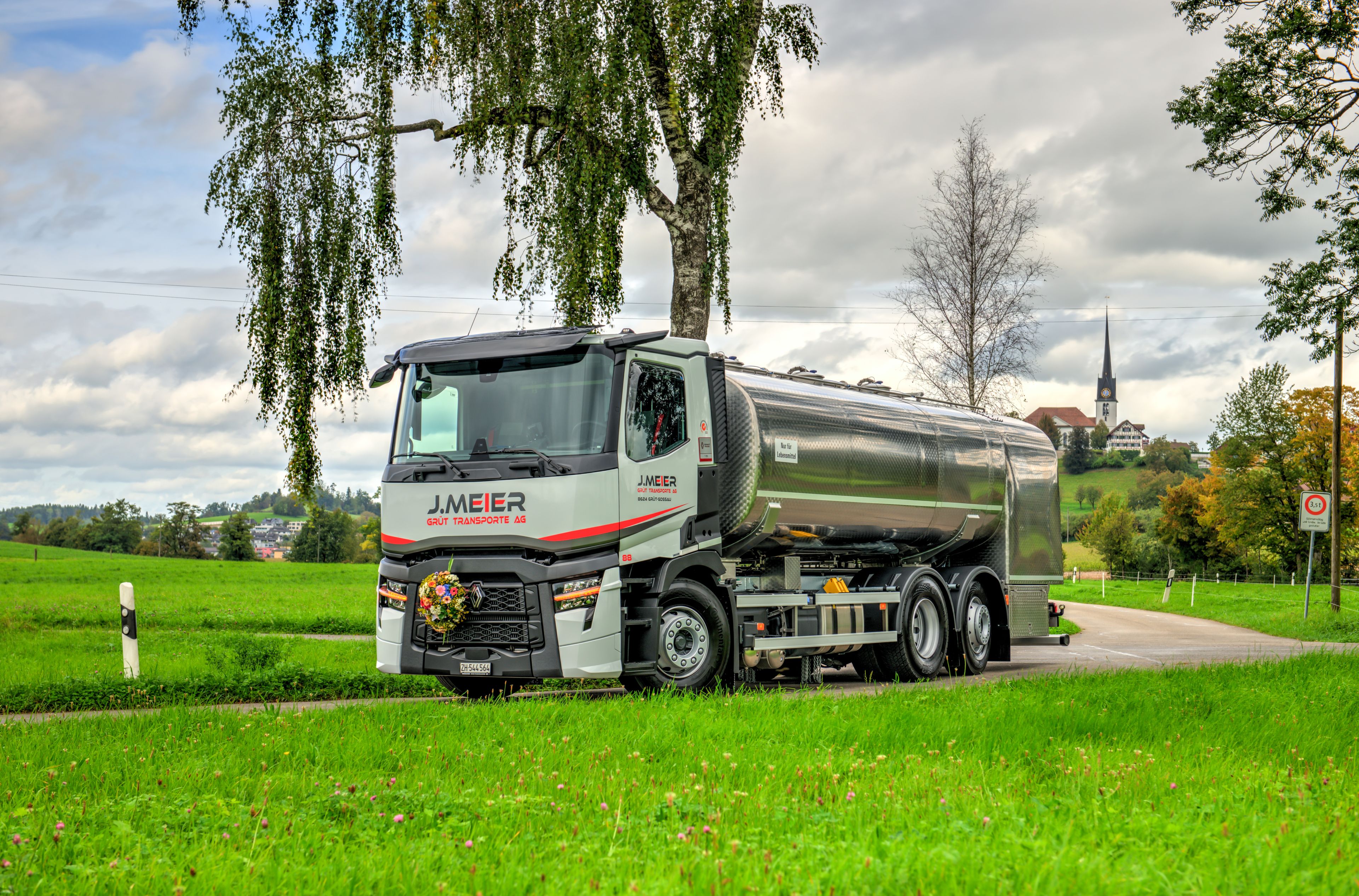 Am 16. September 2025 hat die J. Meier Grüt Transporte AG in Grüt (Gossau ZH) ihren neuen Renault Trucks T460 P6x2 übernommen. Das Fahrzeug wurde über die Thomann Nutzfahrzeuge AG geliefert und ist speziell für den sensiblen Transport von Rahm konzipiert. Das Unternehmen hat zwischenzeitlich zehn Renault Trucks Fahrzeuge im Einsatz