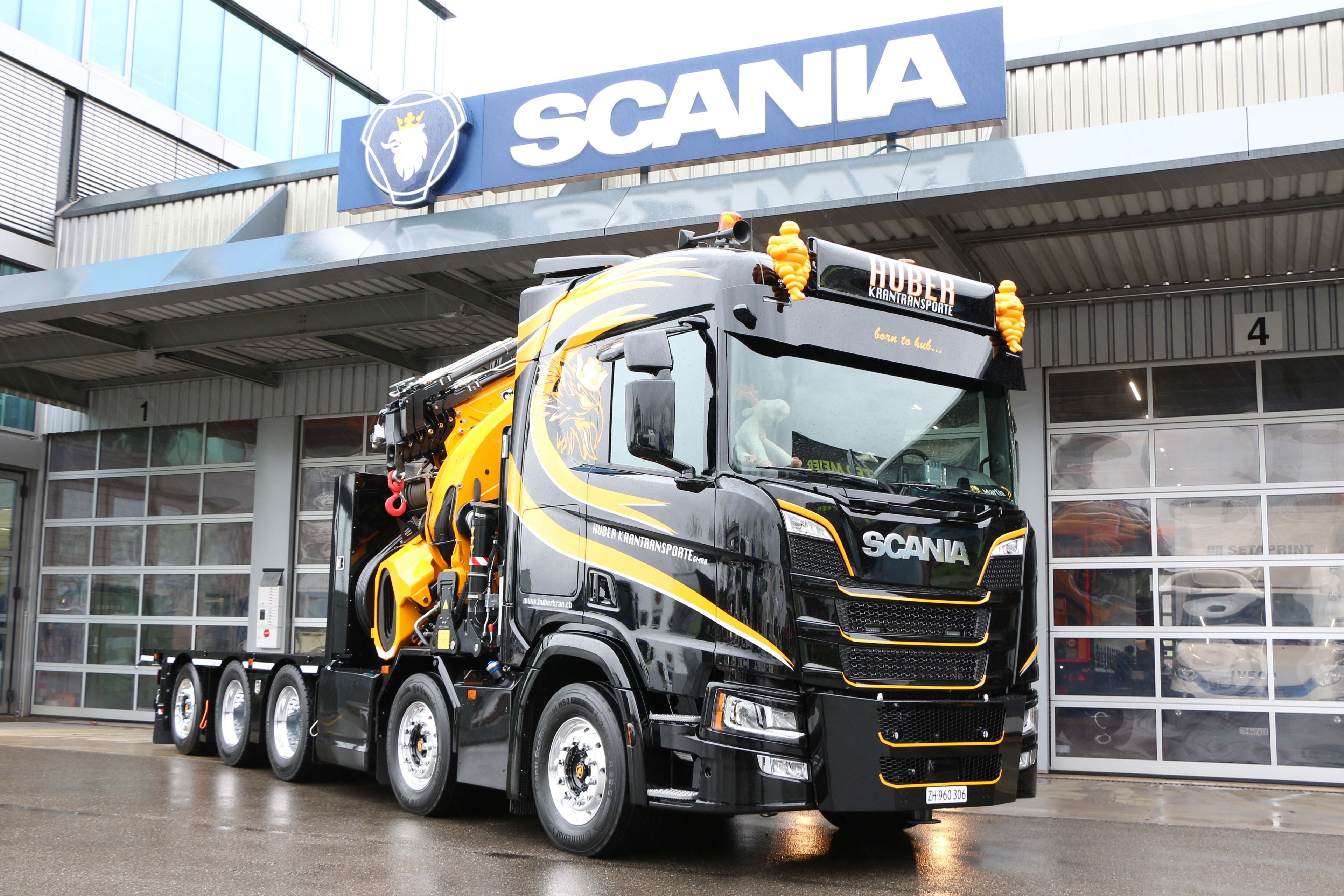 Fast schon durch Zufall stiess man in der Westschweiz auf einen Scania R480 B 10x4*6 5-Achser mit einem 135 m/t Frontkran, der nach einem genauen Augenschein gekauft, umlackiert und anschliessend auch gleich eingesetzt wurde. Dafür musste natürlich ein Fahrer gefunden und eingestellt werden, der dann ab März 2022 die Huber Krantransporte GmbH verstärkte. So wurde Martin innerhalb von nicht einmal zwei Jahren stolzer Besitzer von zwei Scania Fünfachser-Kranfahrzeugen. Wer hätte dies zwei Jahre zuvor für möglich gehalten?