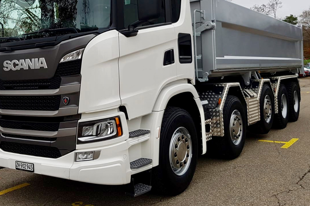 Gleich anschliessend an die transportCH geht das neue 5-Achser-Chassis zum Aufbauer und erhält eine Stahl-Rückwärtskippmulde aufgebaut. Dank Luftfederung und Scheibenbremsen ist das Fahrzeug damit nicht nur für die Grube, sondern auch für längere Überlandstrecken prädestiniert. Das Fahrzeug sollte ab Februar 2020 für erste Demofahrten zur Verfügung stehen und kann bei jedem Scania Verkaufsberater gebucht und reserviert werden.