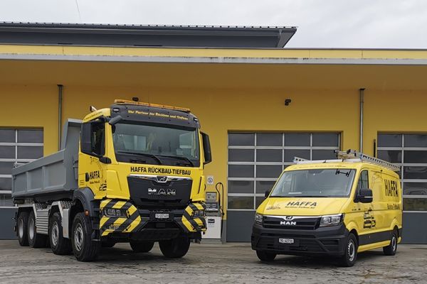 Zwei gelbe MAN-Kraftpakete für die Haffa Rückbau und Tiefbau AG