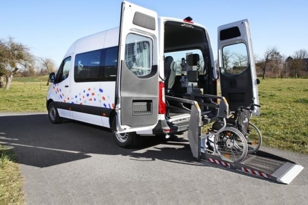 Ein umgebauter Mercedes-Benz Sprinter im Einsatz für Menschen mit Mobilitätseinschränkungen