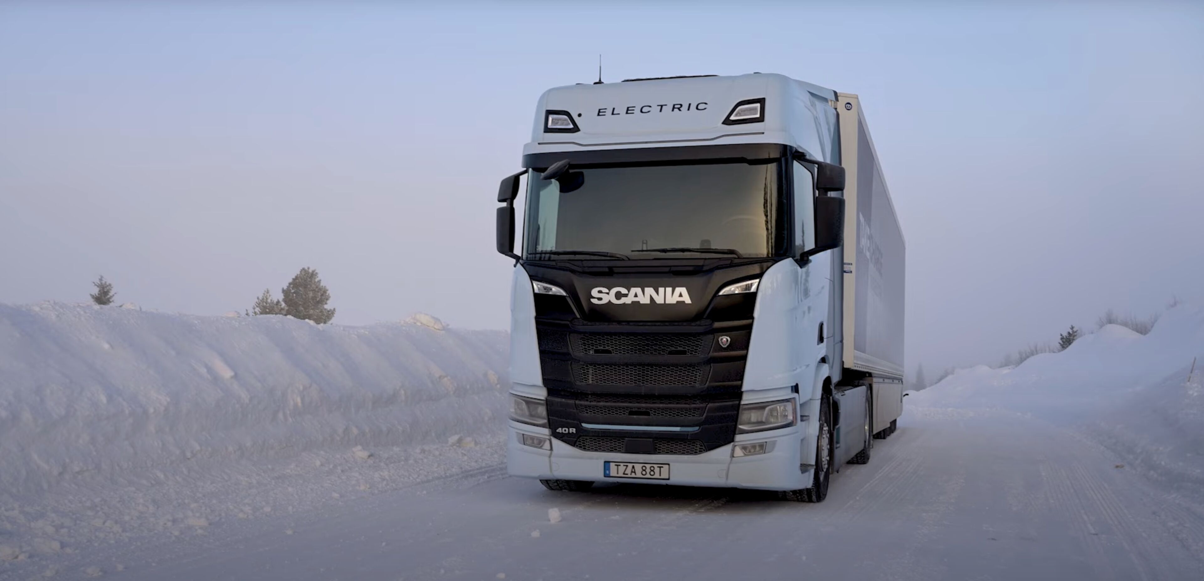 Will Shyers, rédacteur du magazine britannique « Commercial Motor Magazine », a conduit un camion électrique à batterie (BEV) Scania 40R de Trysil (NO) au siège de Scania à Södertälje. Distance : 550 kilomètres, par moins 23 degrés.