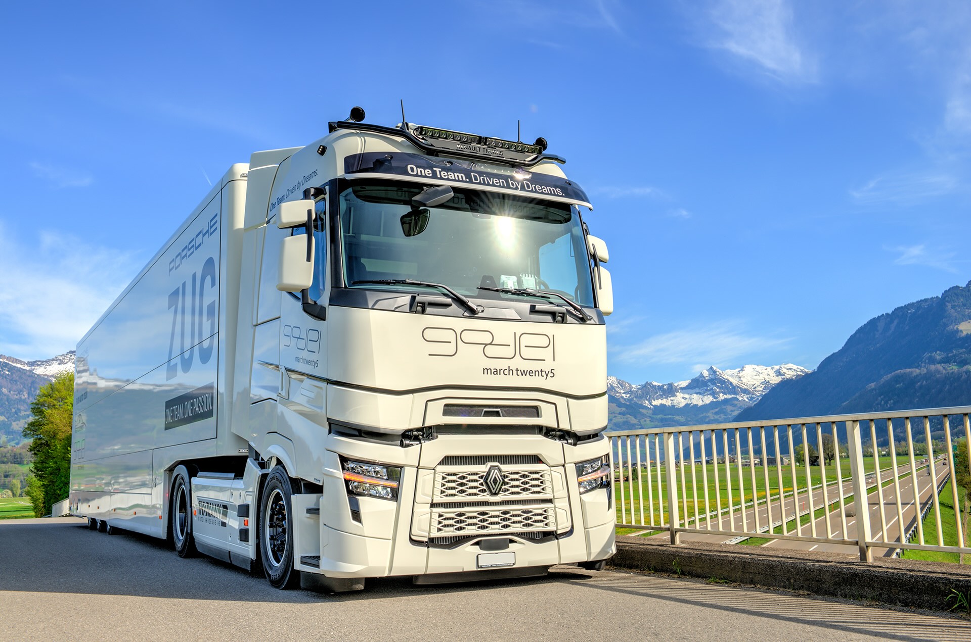La société march twenty5 gmbh a été fondée en 2020 à Zoug. Elle a tout de suite occupé une niche: cette jeune entreprise s'est spécialisée exclusivement dans les services de transport pour une clientèle du secteur des sports automobiles. Ainsi, le tout nouveau Renault Trucks T520 T4x2 transporte des bolides de course sur les circuits européens.