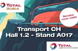Afin de représenter la gamme TOTAL RUBIA, Total SUISSE SA sera présent du 14 au 17 novembre 2019 au salon transport-CH, à Bern. A cette occasion, venez rencontrer notre équipe sur notre stand HALLE 1.2 / A017.