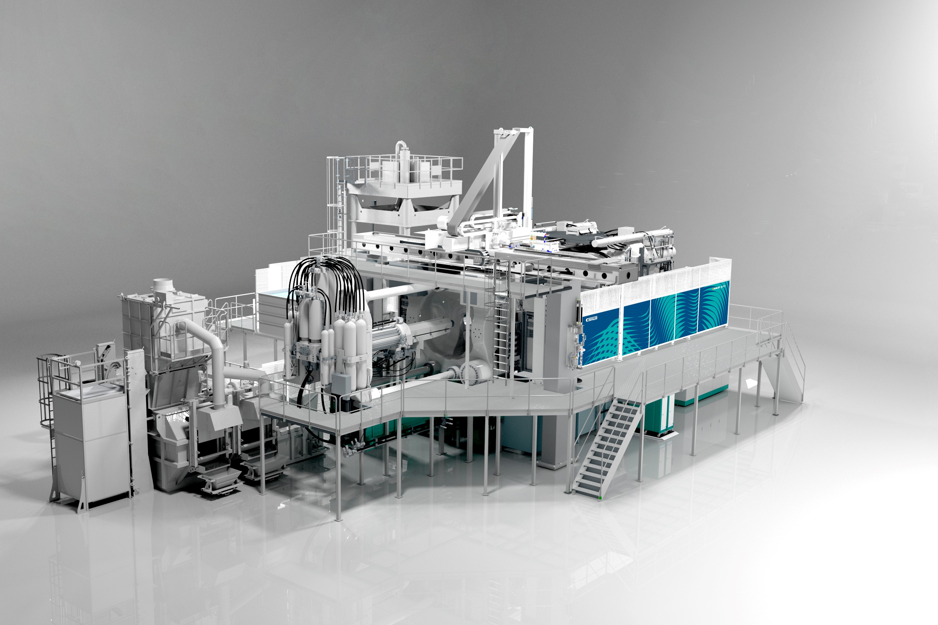 L'année dernière, Bühlergroup a présenté ses dernières presses à haute pression les plus performantes de la classe des 9000 tonnes. Les plus grandes presses à injection sont aussi grandes qu'une maison, avec une hauteur de 8 mètres et une surface au sol d'environ 100 mètres carrés. « Notre Carat 920 est capable d'injecter plus de 200 kilogrammes d'aluminium liquide dans une matrice en quelques millisecondes, ce qui permet de maintenir la matrice serrée en lui appliquant une force de 92 000 kN. Imaginez que vous puissiez bloquer la matrice avec les 9 000 tonnes de la tour Eiffel à chaque tir », a expliqué Michael Cinelli, chef de produit injection chez Bühler, lors de la présentation.