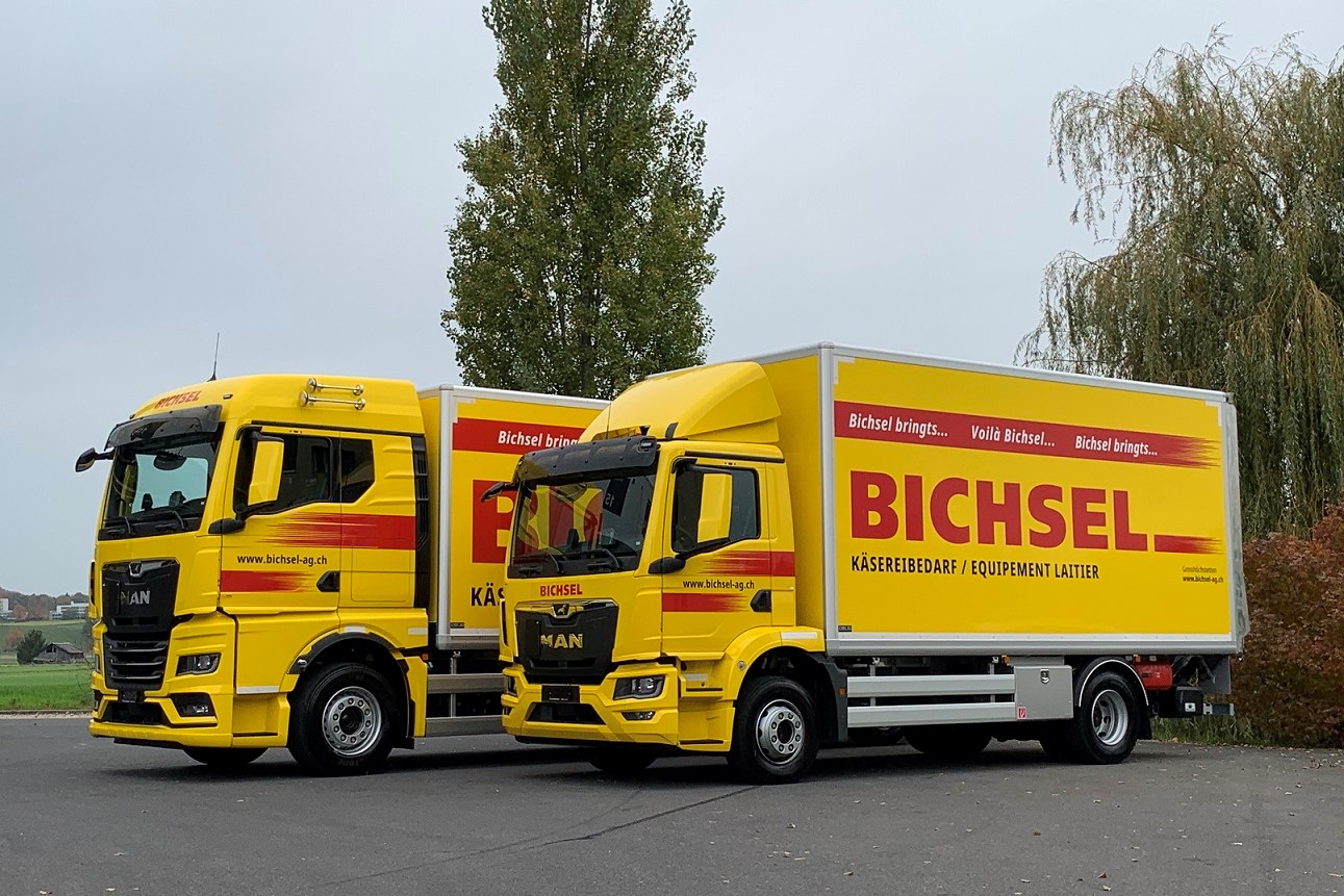Fin octobre 2020, l’entreprise Joh. Bichsel AG à Grosshöchstetten a reçu un MAN TGX 26.470 6x2-4 LL et un MAN TGM 15.290 4x2 LL de la nouvelle génération de camions MAN de la société ABAG Nutzfahrzeuge AG Belp.