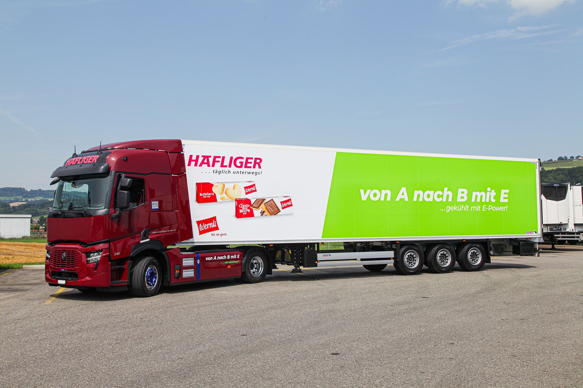 La flotte de 75 véhicules opère exclusivement dans le secteur du transport de denrées alimentaires à travers toute la Suisse, dont environ 50 % sont dédiés aux transports sous température contrôlée. L’entreprise Anton Häfliger AG joue un rôle clé dans l’approvisionnement du commerce de détail et de la restauration, garantissant un maillon essentiel de l’approvisionnement national. Renault Trucks a toujours été un acteur clés dans l'histoire de la société. Aujourd’hui, près de la moitié de la flotte arbore le losange du constructeur français de véhicules utilitaires. «Les années d’expérience positive avec Renault Trucks et l’excellent service offert par le garage Windlin AG à Kriens sont à l’origine de cette relation de confiance» justifie Roland Wyss cette fidélité à la marque.