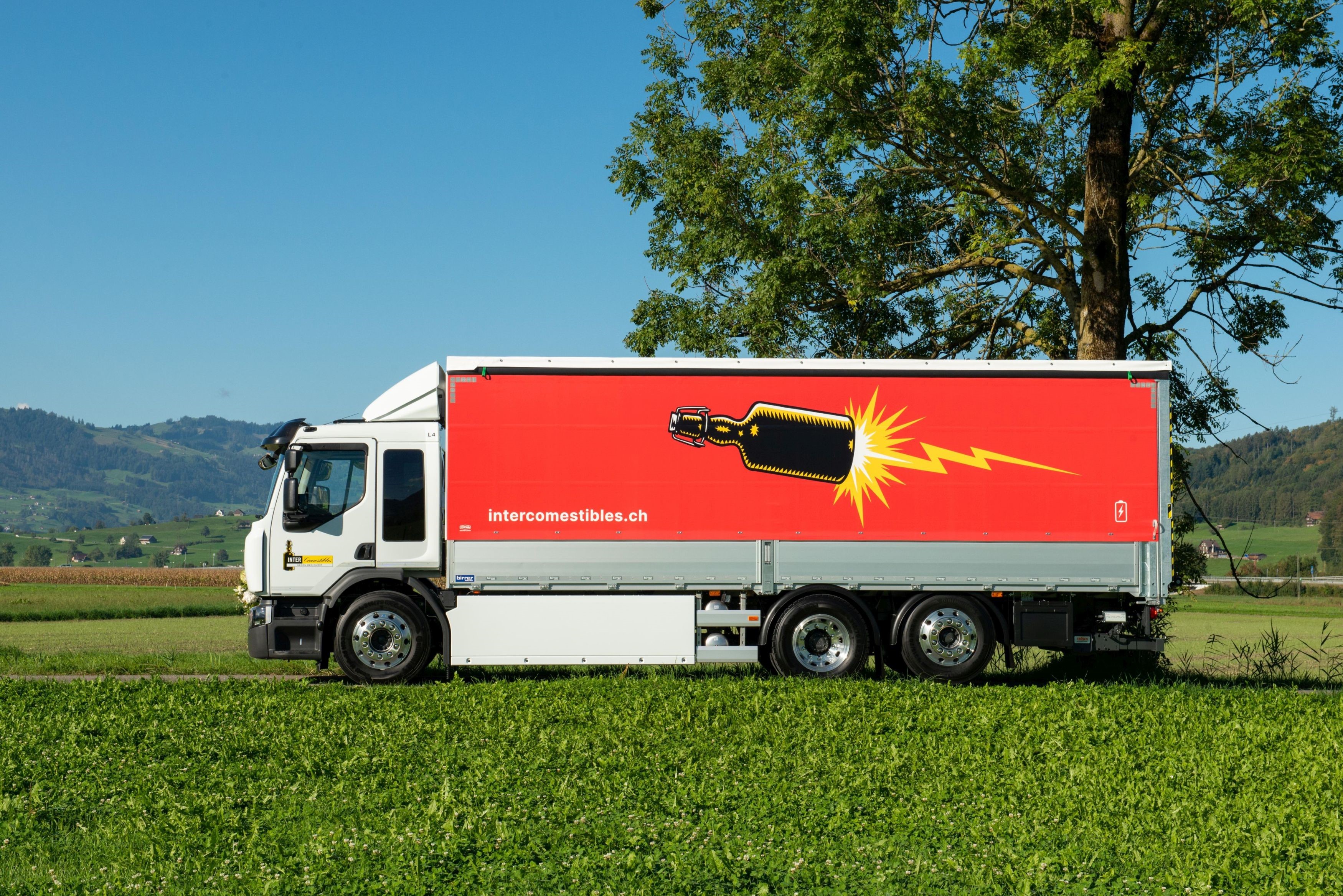Inter Comestibles 87 AG en route avec un camion électrique de Renault Trucks