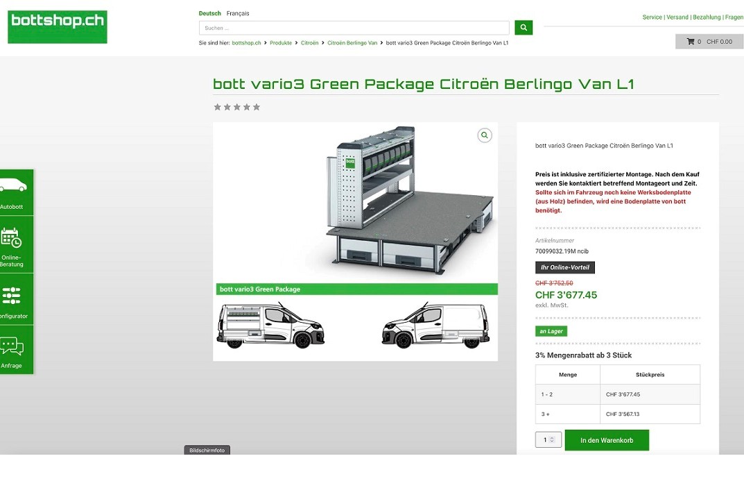Des plaques de sol aux barres de toit en passant par les tirants, tous les accessoires imaginables pour les véhicules utilitaires (jusqu'à 3,5 t) se trouvent désormais dans la boutique bottshop.ch. Grâce à la nouvelle conception et à la fonction de filtrage étendue, il est désormais encore plus rapide et plus facile de trouver le produit souhaité. En cas de commande erronée, il est désormais possible de l'annuler ou de la retourner directement dans le magasin sans aucun problème. La boutique peut être utilisée comme une plateforme d'achat et comme un outil de recherche de produits et sera continuellement développée à l'avenir.