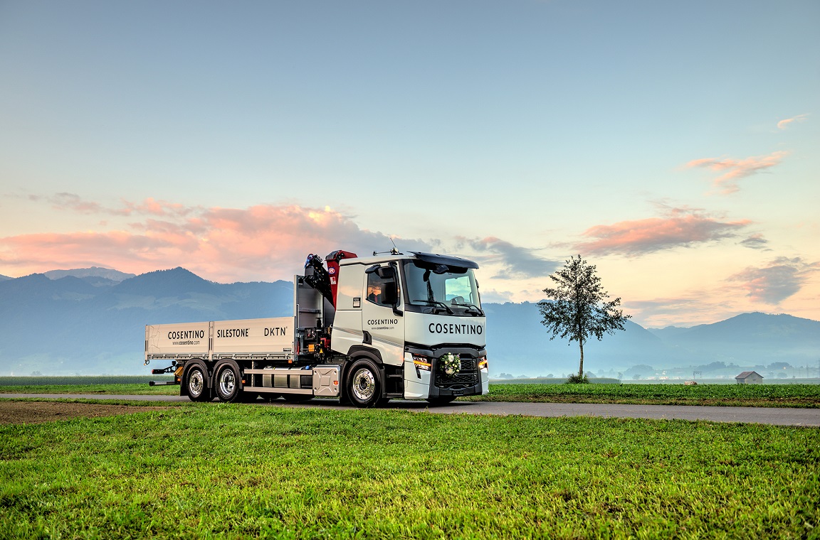 Cosentino Swiss AG, une entreprise leader qui produit et commercialise des surfaces innovantes et durables de grande valeur pour le monde de l’architecture et du design, dont le siège se trouve à Neuhaus SG, a renforcé sa flotte avec l’acquisition d’un nouveau Renault Trucks T440 6x2 équipé d’une grue.