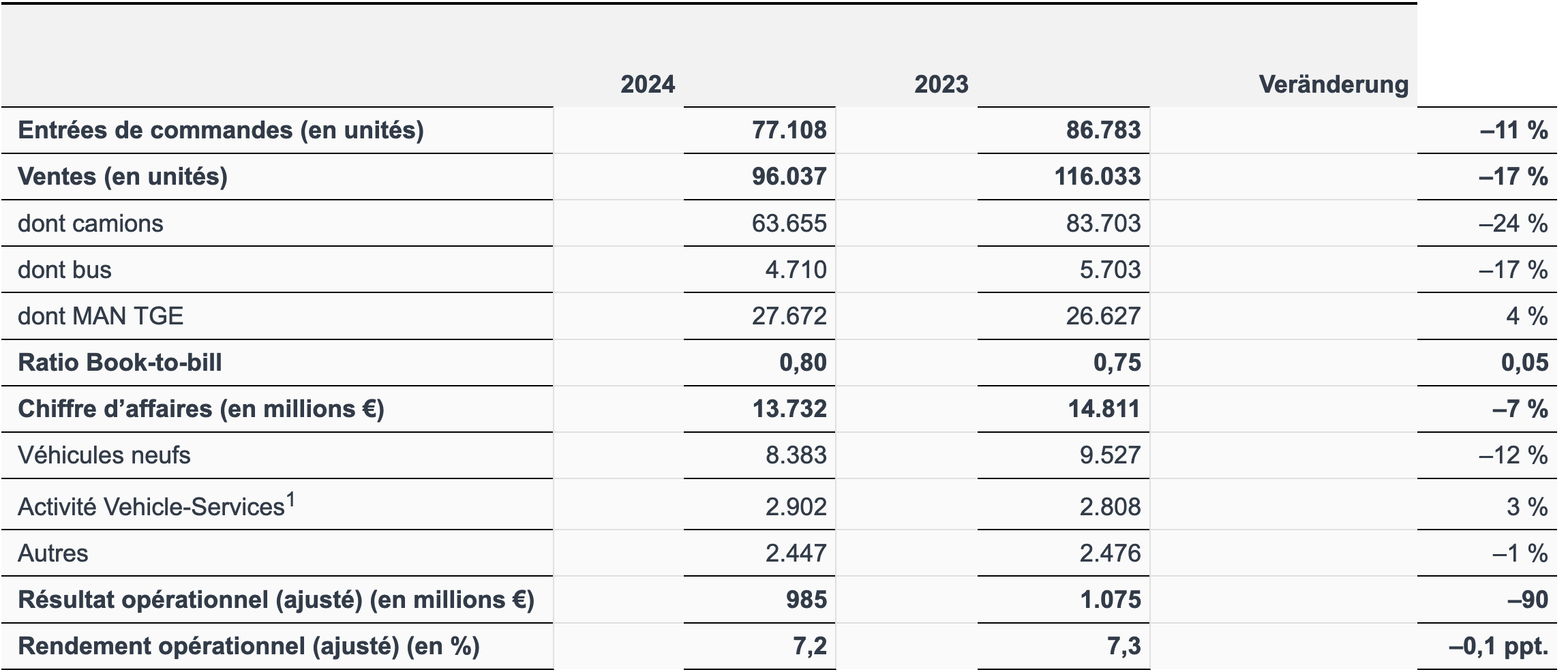 - MAN Truck & Bus résilient au cours de l'exercice 2024 en cas de forte baisse des ventes de camions