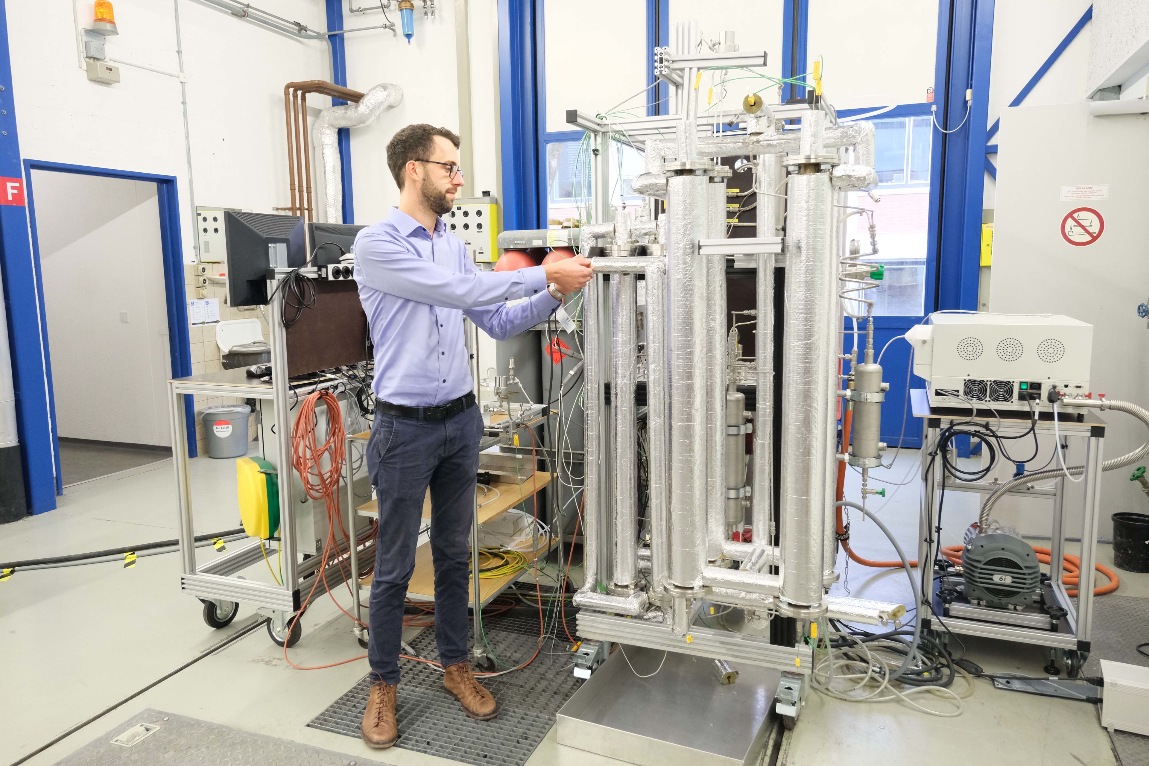 Florian Kiefer et son équipe ont mené pendant près de trois ans des recherches sur un nouveau concept de réacteur avec des pellets de zéolithe qui font office de support de catalyseur poreux et qui adsorbent en même temps l'eau produite pendant la réaction de méthanisation. L'accent a été mis sur l' « upscaling » du procédé, c'est-à-dire sur un concept permettant de mettre en œuvre ce procédé pour les grandes installations. Pour ce faire, l'Empa a collaboré avec différents partenaires industriels. Le facteur décisif pour la conception du réacteur et la planification du processus est avant tout le temps de régénération, c'est-à-dire le temps nécessaire pour le séchage du réacteur. Pour garantir une production continue de méthane, il faut donc qu'au moins deux réacteurs fonctionnent en alternance. Pour le séchage des réacteurs, il est en outre essentiel de disposer d'une gestion thermique appropriée, soit par l'évacuation de la chaleur du réacteur, soit par le stockage interne de la chaleur dans le lit catalytique. Dans ce domaine, l'équipe de Florian Kiefer a déposé un brevet.