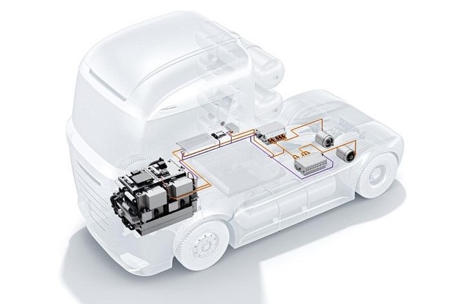 Bosch s'appuie sur la technologie des piles à combustible pour développer des technologies de propulsion - en particulier pour les véhicules utilitaires lourds. Selon Bosch, la propulsion électrique n'est pas le premier choix pour les véhicules utilitaires lourds, simplement en raison du poids de la batterie, des longs temps de charge et de l'autonomie limitée.