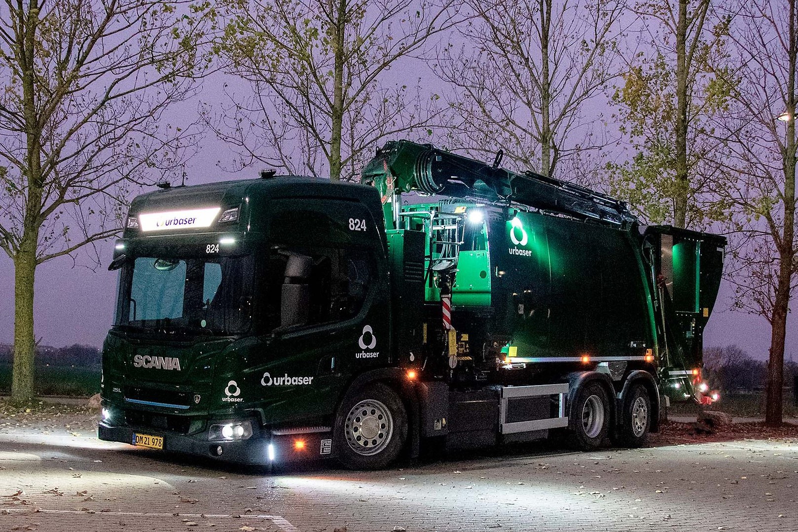 Le premier Scania 25L entièrement électrique du Danemark doté d'une grue et d'un compacteur combinés pour la collecte des déchets est désormais en service dans les rues de Copenhague. Il est exploité par la société mondiale de gestion des déchets Urbaser.