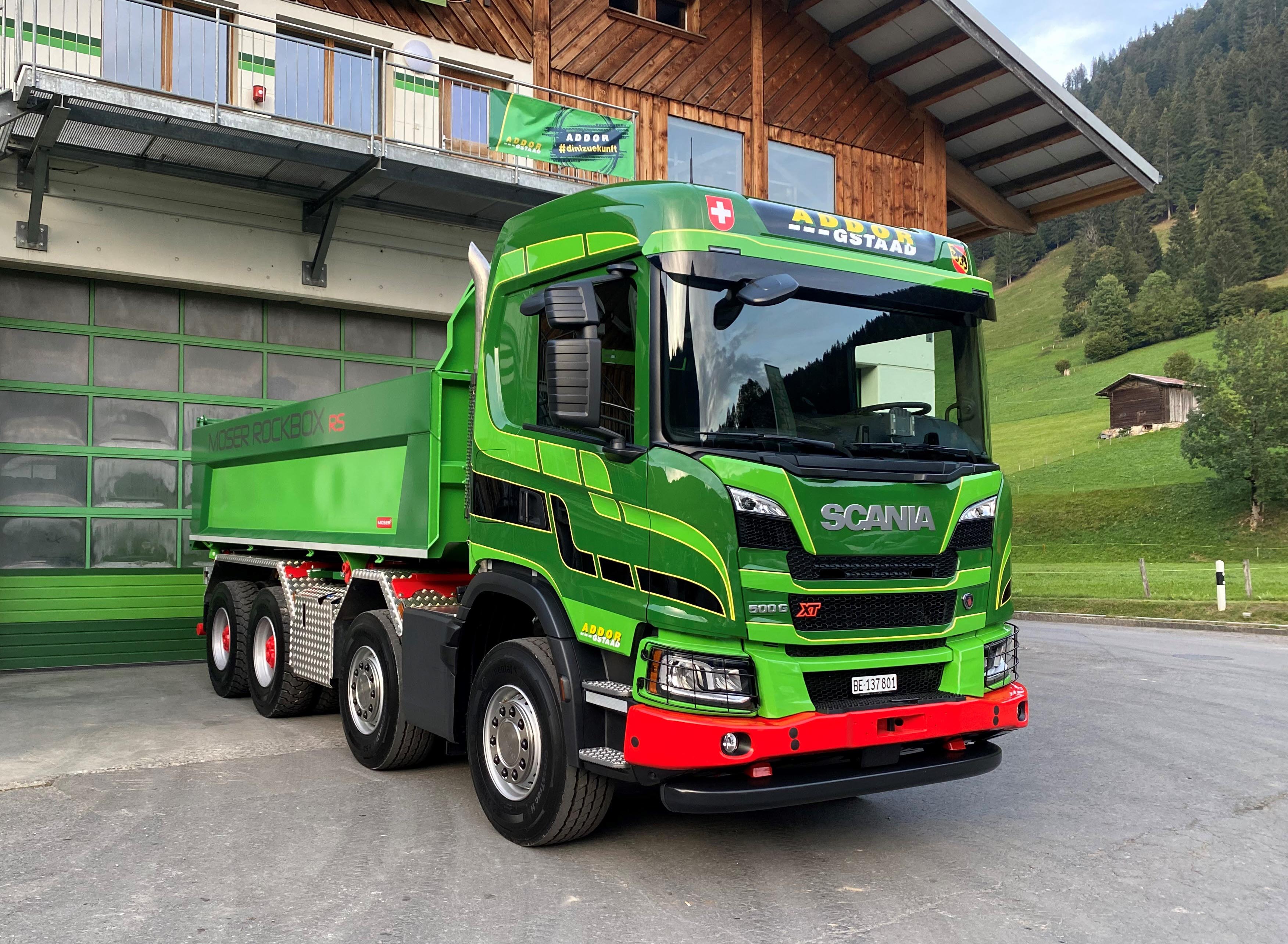 Depuis le début du mois d'octobre, pour la première fois dans les presque 70 ans d'histoire d'Addor AG, un camion Scania est en service dans le parc de véhicules moderne et réputé bien au-delà de l'Oberland bernois. Même si l'on a déjà été sur le point de le faire, on n'a jamais fini par signer de contrat d'achat pour un Scania. Mais comme on le dit si bien, «petit à petit, l'oiseau fait son nid», et début 2022, le contrat d'achat pour un premier Scania a été signé. Pour Heinz Addor, c'était le dernier et pour Daniela le premier projet de véhicule, qu'ils ont commencé ensemble lors du dernier salon transportCH à Berne et qu'ils ont maintenant réalisé.