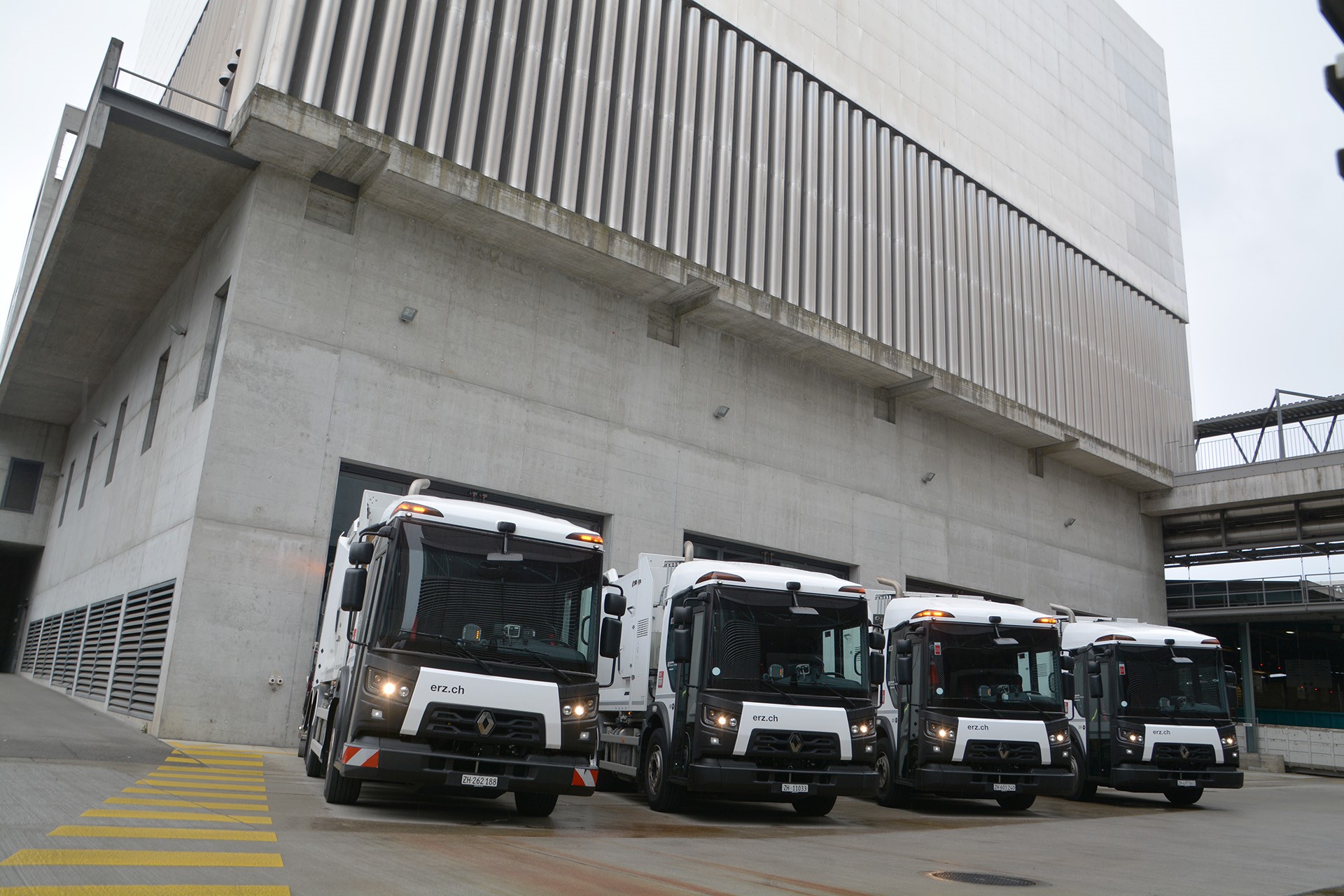 Quatre nouveaux Renault Trucks modèle D Access DTI 8 viennent de rejoindre la flotte d'une centaine de véhicules du service de voirie ERZ Zurich (élimination et recyclage de la ville de Zurich) à la Hagenholzstrasse. Avec leur carrosserie hybride Stummer fournie par Contena Ochsner AG, ils constituent une première pour ERZ.