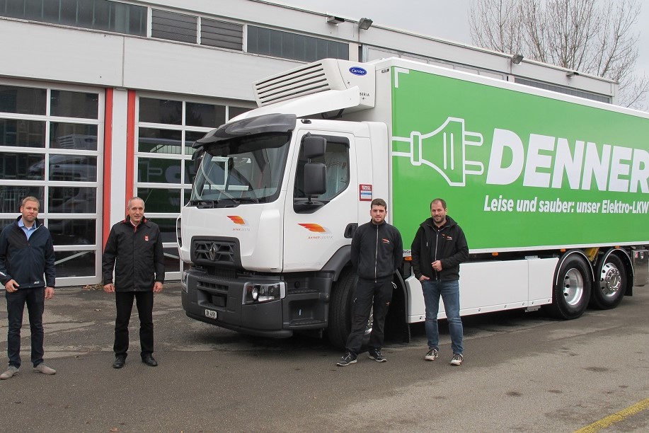 La flotte de près de 100 véhicules de la société Rhyner Logistik vient d'accueillir un nouveau véhicule qui sort des sentiers battus. Il s'agit d'un D WIDE Z.E. P6x2 100 % électrique de Renault Trucks destiné à l'approvisionnement des succursales Denner à Zürich et sa périphérie. Sa particularité réside dans les panneaux photovoltaïques installés sur le toit de la caisse frigorifique pour alimenter le groupe frigorifique.