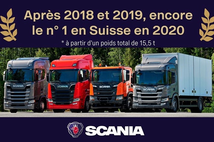 Après 2018 et 2019, les véhicules utilitaires Scania ont de nouveau atteint la première place des immatriculations de véhicules de 15,5 tonnes et plus l'année dernière.