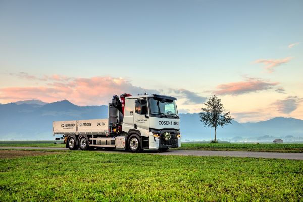 Le premier Renault Trucks équipé d’une grue pour la société Cosentino Swiss AG